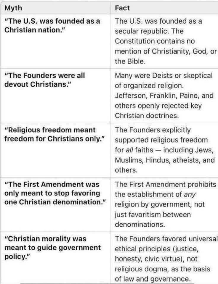 Inspired by a “Myth vs. Fact” image about America’s founding and religion, I wanted to dig deeper—past slogans and into the record. Here’s what the sources show, and why it matters now.